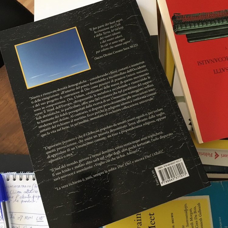 L’indispensabile equità -il fondamentale sostegno sociale- viene commisurata e distribuita discrezionalmente da alcuni Stati sovrani che detengono un potere formidabile e incontrollato, i quali hanno progettato addirittura la costruzione del Dio come “pensiero di pensiero” (nóesis noéseos). L’Islam, anche da questo punto di vista è vincente: oltrepassando la metafisica occidentale e rinnovando le Fedi abramitiche in particolare, trapassando tutto ciò, offre una (la) sostanza che nel paradosso del supporto limitante dei fedeli perseguitati dalla ricerca di un umanesimo tratteggiato nell’età moderna non desiste, disponendosi alle invocazioni intercettanti del richiamo alla morte.