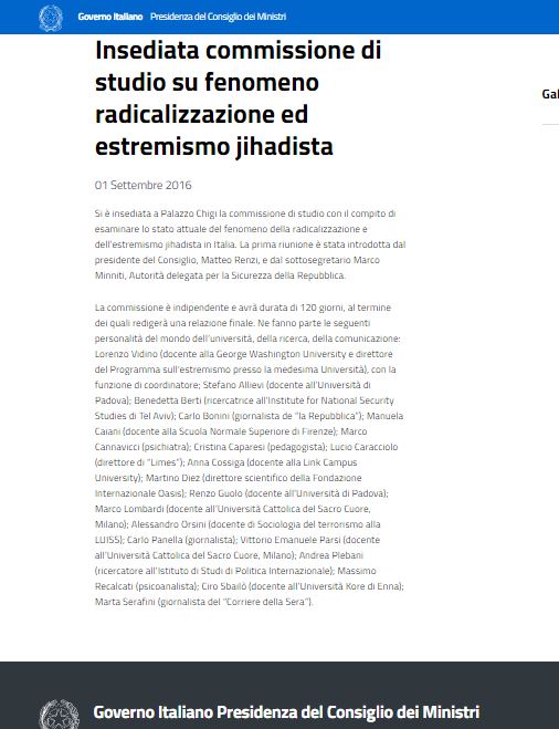 Note for English language-readers: the two documents presented (right) are the official web pages where the “study programs” on the topic “extremist Jihad and terrorism” are exposed. These are programs coordinated by the Italian State Government but which include the Countries of European Community.
